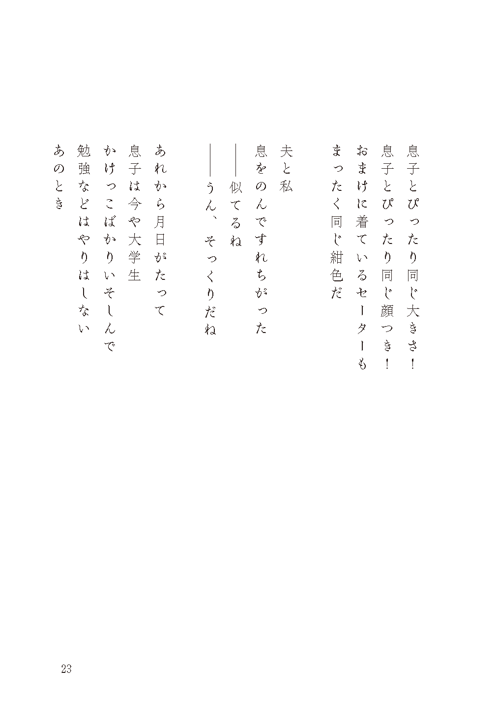 子どもたちのユニークな視点に驚かされた日々や、日常のなかにある飾らない喜び。